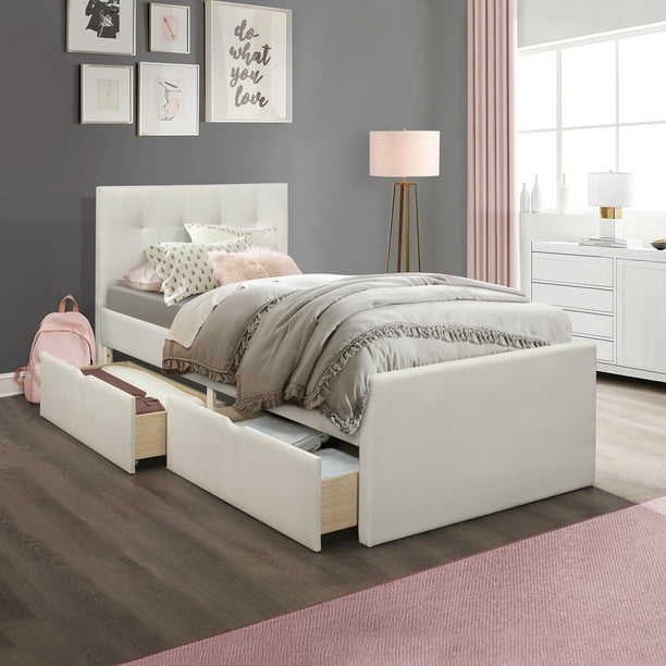 Vaughan bassett transitions queen upholstered bed with 1 side. This prepac storage bed is made with a classy espresso wood finish. Dhp upholstered linen cambridge platform storage bed. It has six full extension drawers that are located underneath a sleek wood veneer frame. Our chesterfield collection is built for superb comfort. Giulia twin mate's bed with drawers and bookcase. A beautiful designed platform storage bed with a linen upholstered finish complete with headboard that would complement any bedroom style. Download the complete design plans and cut list here. It features 6 drawers altogether with 3 drawers on each side of the bed. Our streamlined andes deco upholstered bed gets a practical update: On the footboard side, it offers two large drawers. Thickly padded and fully upholstered on the fronts of the four storage drawers. Best platform bed with storage queen size one and only omahhome.com.